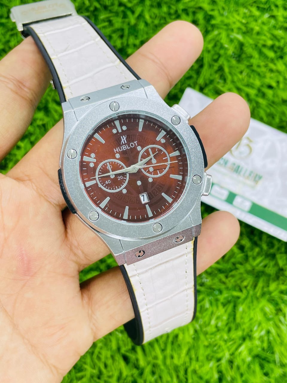 This Hublot automatic watch for men is the pinnacle of luxury and functionality. Crafted with precision, it features an automatic movement, ensuring accuracy and longevity. The watch is designed for those who appreciate bold, sophisticated timepieces. Its luxury design makes it perfect for both formal occasions and everyday wear. The Hublot watch for men stands out with its sleek dial, durable strap, and water-resistant features, making it an ideal choice for modern men. If you're searching for sports watches for men that combine style with performance, this Hublot first copy delivers. From rolex watch for men aficionados to those looking for the best Casio watches for men, this timepiece competes at the highest levels. Plus, with its automatic movement, this men's watch eliminates the need for frequent battery changes, offering convenience and reliability.